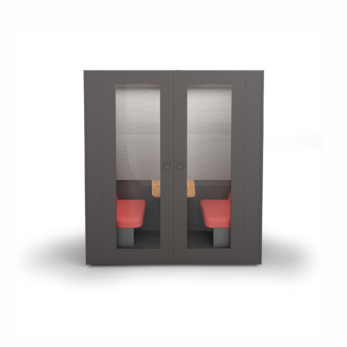 Modelos e variações de cabine acústica para escritório e reunião. Modelos individuais, para 2 e 4 pessoas.