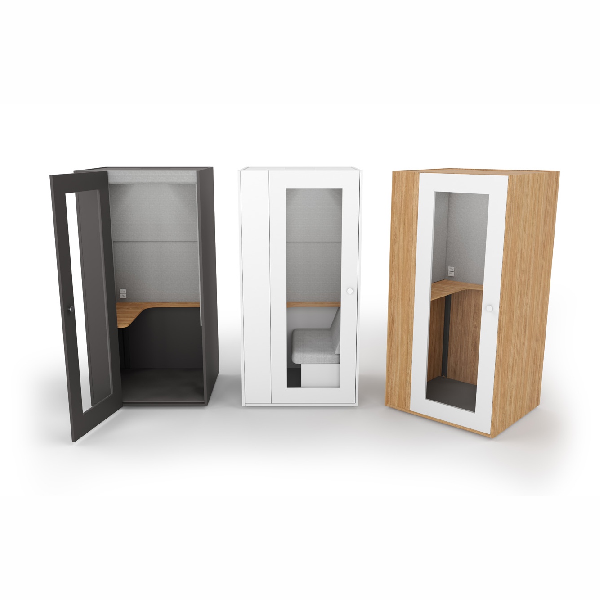 A essência das cabines acústicas Light e Pro está na maneira clara de concepção e produção que prioriza o design minimalista e sem excessos.